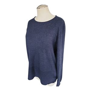 Vila Milano Navy Blue Long Sleeve Sweater Tee L Wool Blend Basic Layering