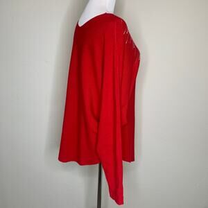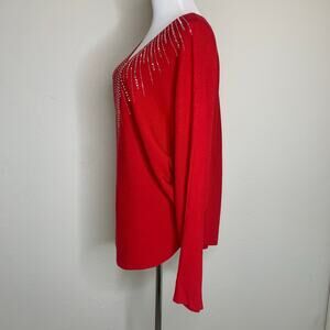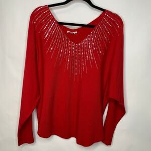 Vila Milano Red Rhinestoned Sweater Sz XL Dolman Sleeve