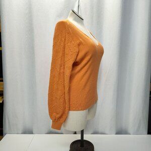 Vila Milano V-Neck Sweater Womens XL Textured Bishop Sleeves Peach Color