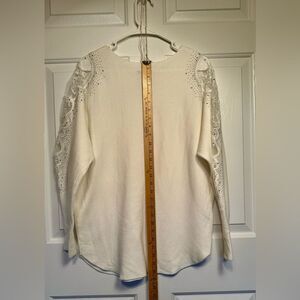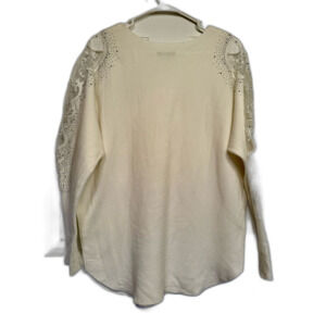 Vila Milano White Mixed Media Sweater Dolman Sleeves Sequins Size Medium