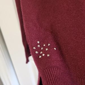Vila Milano Wool Burgundy Long Sleeve Cowl Neck Sweater Size SM Beaded Side Slit