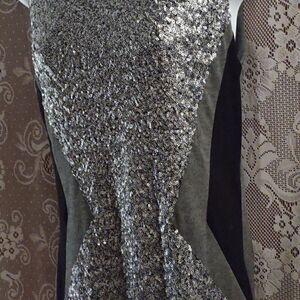 Vila Women's Size M Black Gray Sequin Front Sleeveless Party Dress Zip Back