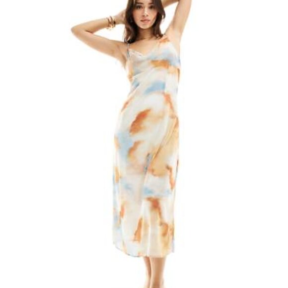 Vila cowl neck cami maxi dress (10) in abstract dream print cream peach blue.