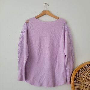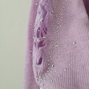 Vila Milano Purple Sweater Lace Rhinestone Sheer Sleeve Detail M