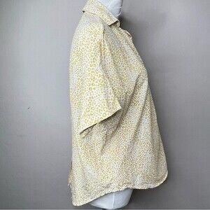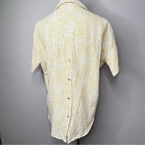 VGUC animal print with gold stitching throughout. Back button blouse size 36