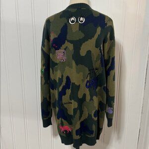 Vilagallo Anthropologie embroidered camo cardigan sweater S Small