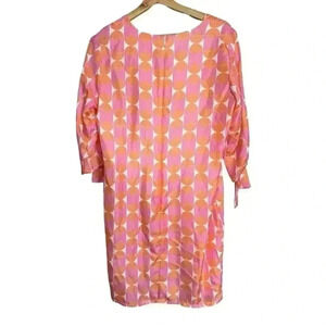 Vilagallo Geometric Pattern Silk V Neck Long Sleeve Shift Dress Size 40 EU