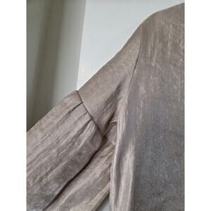 Vilagallo Cream Gold Sheen Shiny Flowy Boho Chic Peasant Top Blouse, Size Large