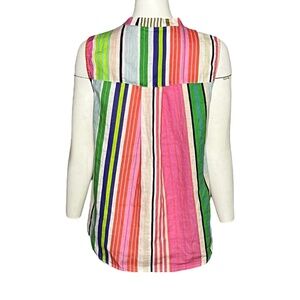 Vilagallo Linen Sleeveless Top Size Large (44) Women Multicolor Stripe Button Up