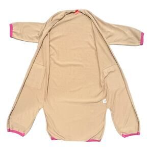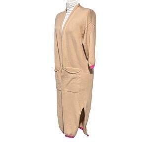 Vilagallo Long Line Cardigan Sweater Small Beige Pink Trim Duster Cotton Pockets