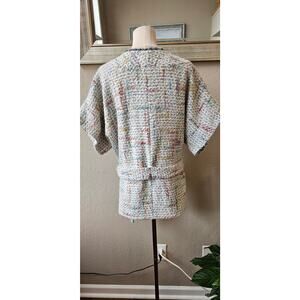 Stylish Vilagallo jacket with a textured multicolor design. Features a belted waist and open front. Perfect for layering.