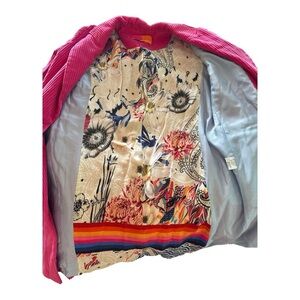 Vilagallo Pink Corduroy Coat Leopard Pocket Detail Ribbed Blazer Jacket 36 US S