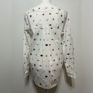 Vilagallo Travel Vacation Print Long Sleeve Popover Blouse New Without Tags