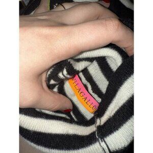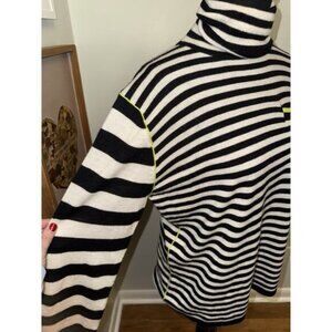 Vilagallo Women’s Black White Yellow Turtleneck Striped Sweater Large Wool Blend