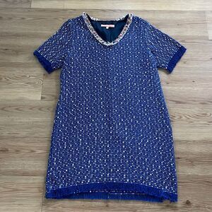Vilagallo Womens Blue Tweed Fringe Hem Dress Size 44 Classic Office Workwear