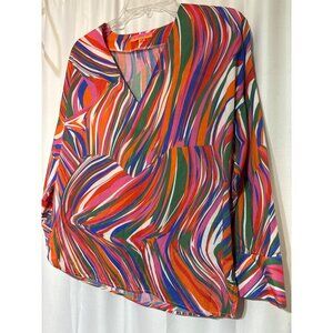 Vilagallo Womens Multicolor Abstract Print V-Neck Blouse Size 42 With Buttoned