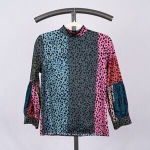 Vilagallo Women's Multicolor Animal Print Top US Size SMALL Colorful Playful Fun