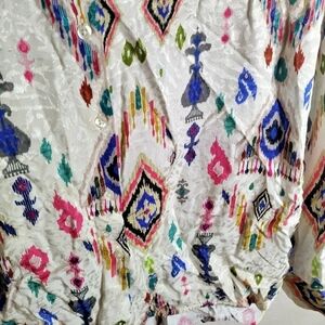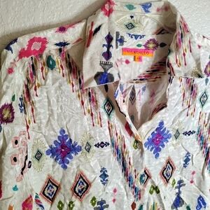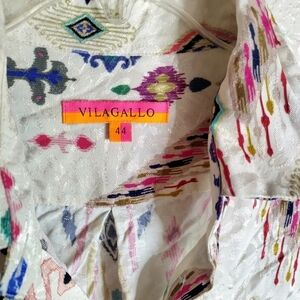 Vilagallo whimsical juniper Aztec print button down blouse sz 44/Xl