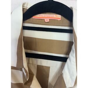 Vilagello Top Size 44 White Beige Stripes Button Accents
