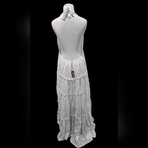 A refined halter-neck maxi dress perfect for day or night. Styled with a low back for a touch of allure the Rainbow Birds print completes the summer look.