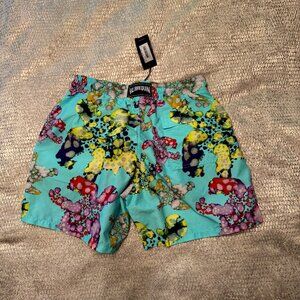 Vilebrequin swim trunks with vibrant sea creature design. Features drawstring waist. Perfect for beach days.
