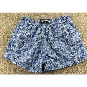 Vilebrequin Swim Trunks Shorts Mens Large Blue Jungle Floral Drawstring Turtle