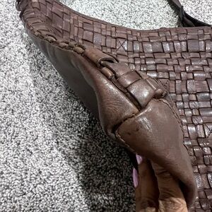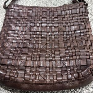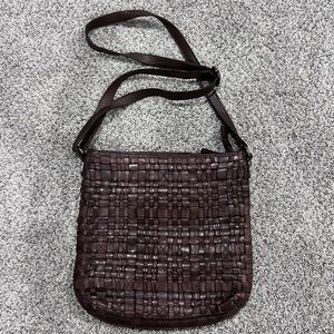 Stylish woven crossbody bag in rich brown. Perfect for everyday use.
