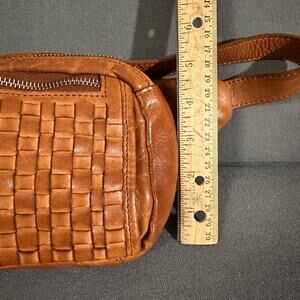 This Vilenca Holland crossbody bag features a beautifully woven leather design in a warm tan color, offering a sophisticated and handcrafted look. The adjustable strap ensures a comfortable fit, making it perfect for daily use. Can be worn as a crossbody or waist pack for added versatility. Crafted from high-quality, buttery soft leather, with quality zippers that glide with ease. It exudes elegance and durability. This is your new summer/vacation bag!!! Clean, excellent condition from a non-smoking home.