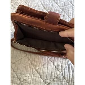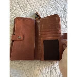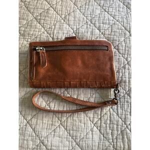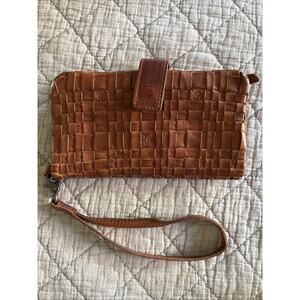 Vilenca Holland Wallet Brown Cognac Leather Woven Soft Slot Basketweave Wristlet
