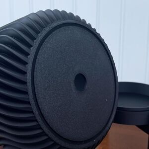 The planter is 3D printed using eco-friendly, biodegradable PLA plastic filament. 3D printing is done by printing layer upon layer of filament to build up and create the print.