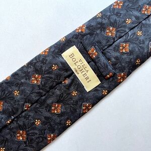 Villa Bolgheri Mens 100% Silk Tie Made in Italy Floral Geo Patterned Dark Navy