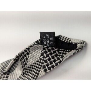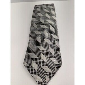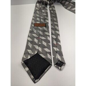 Villa Bugatti Geometric Black/White Silk Pointed Classic Necktie Tie