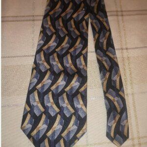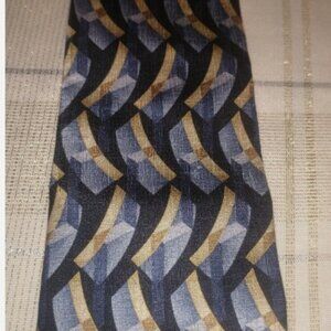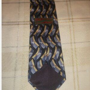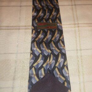 Villa Bugatti Men Tie Silk Necktie Navy Gold Blue Ornate Geometric Arch Curves