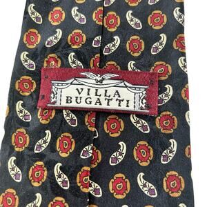Villa Bugatti Neck Tie Italian Silk Black Red White Paisley Classic