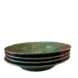 Bring festive elegance to your holiday table with this set of four 9.5 inch made in Portugal green salad/pasta bowls. Featuring a beautiful floral edge design, these bowls are crafted with quality and style, perfect for adding a touch of sophistication to your holiday gatherings. Whether you're hosting Christmas dinner or looking to enhance your seasonal decor, these new Portugal-made bowls are a timeless addition. Ideal for collectors or anyone seeking premium dinnerware, this set is ready to elevate any table setting.