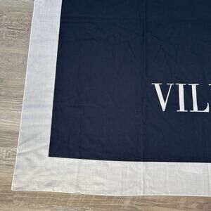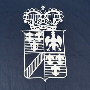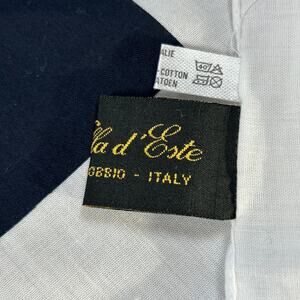 Bold and rare Villa d’Este textile banner, made in Italy from 100% cotton. Features a navy body with white trim and a striking central crest. Perfect as a wall hanging, decor banner, or statement textile. A luxe piece from the iconic Lake Como hotel.