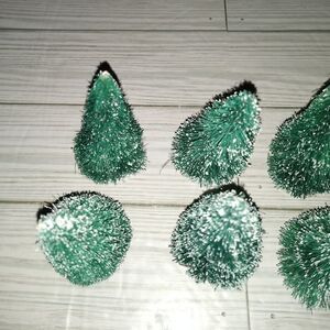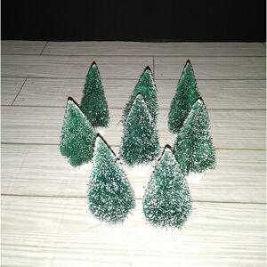 Village Accessories Vintage Frosted Topiary Trees Set of 9 Christmas Holiday. 4in tall. Has some wear and minor from age use and storage. See pictures. Sold as is.