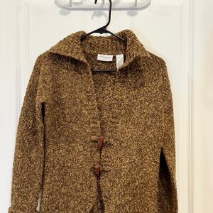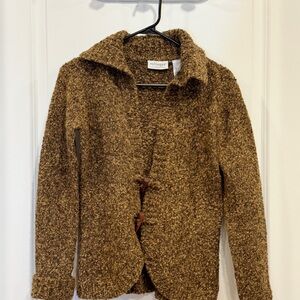 Villager A Liz Claiborne Company Women’s WoolPolyester Brown Sweater Warm Button fits size small still in great condition