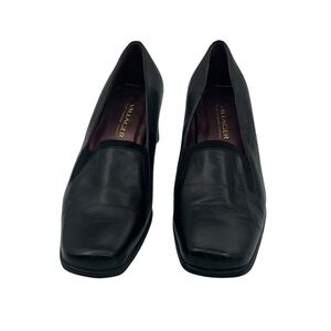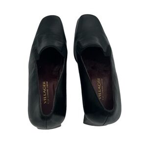 Villager By Liz Claiborne Black Leather Square Toe Block Heels Size 9 Women's