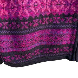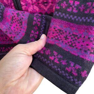 This sweater jacket from Villager by Liz Claiborne offers a professional yet stylish look with its vibrant pink and purple patterns. The zip closure and knit material provide both comfort and warmth, making it suitable for various settings.