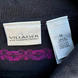 Villager By Liz Claiborne Womens Black Pink Polo Collar Knit Zip Sweater Jacket