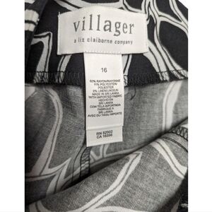 Villager Liz Claiborne Company Black White Leaf Print Linen Blend Ankle Pant Size 16