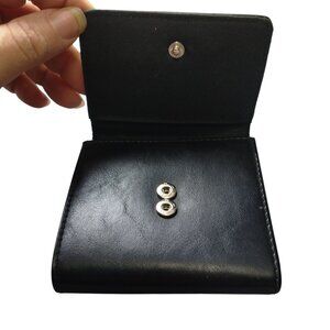 Villager Liz Claiborne Faux Leather Trifold Wallet Black Flower Accent