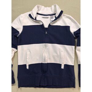 Villager Liz Claiborne Nautical Jacket Long Sleeve Navy White Stripe Zip Medium