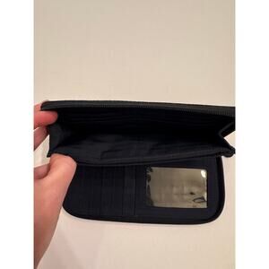Villager Liz Claiborne Navy Blue Wallet 100% Polyester Zip Around 8x4x1"
