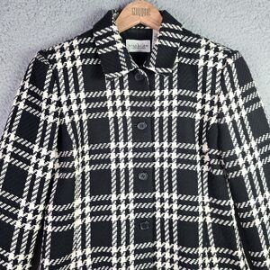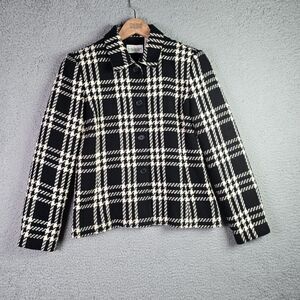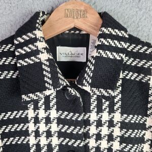 Villager Plaid Blazer Jacket 8 Black White Wool Blend Lined Padded Shoulder