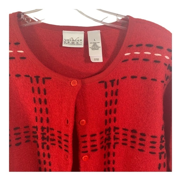 Villager Sport Women's Vintage Red Wool Button Down Cardigan Sweater Size L