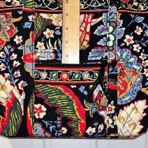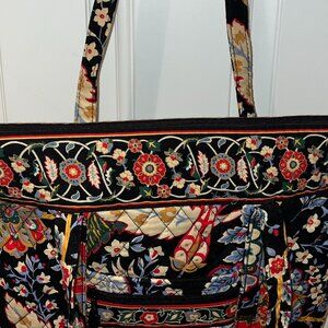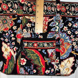 The Villager Tote is substantial. On the front of the bag are two pockets, a zippered pocket sits atop of a slip pocket, roughly 5.5 and 6.5 inches deep. The bag zips closed. Inside are 6 nice slip pockets.
