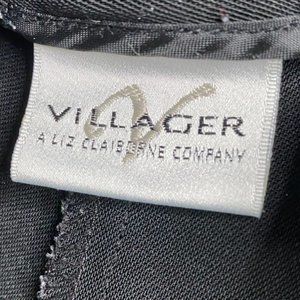 Elevate your wardrobe with these stylish Villager by Liz Claiborne black dress pants. Made from high-quality polyester fabric and featuring a pleated front with slant pockets, these pants are perfect for any occasion, whether it's a casual day out or a business meeting. The pants have a regular fit and a straight leg style, with a high rise of greater than 10.5 inches and a waist size of 34 inches. These pants are machine washable, making them easy to care for. The black color and solid pattern add a touch of sophistication to any outfit, while the zip closure ensures a secure fit. Ideal for travel, party/cocktail, workwear, and business occasions, these pants are a must-have for any fashion-forward woman.
