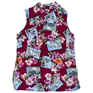 Villager by Liz Claiborne Button Up Hawaiian Tank Top